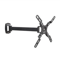 Ideal para una habitación o estancia que requiera una visualización de la TV desde cualquier punto. El soporte de pared ELBE SP-1342-A está diseñado para soportar una televisión entre 13’’ y 42”. Compatible VESA 50x50, 75x75, 100x100, 150x150 o 200x200, soporte articulado con un ángulo de giro de ±90° y una inclinación de hasta 10º para colocar en lugares elevados y así ofrecer una visibilidad total de la pantalla. Acabado en color negro. El soporte ELBE es capaz de soportar televisores de hasta 15 Kg de peso. Dispone de tornillos de sujeción y manual de instrucciones detallado para su montaje.