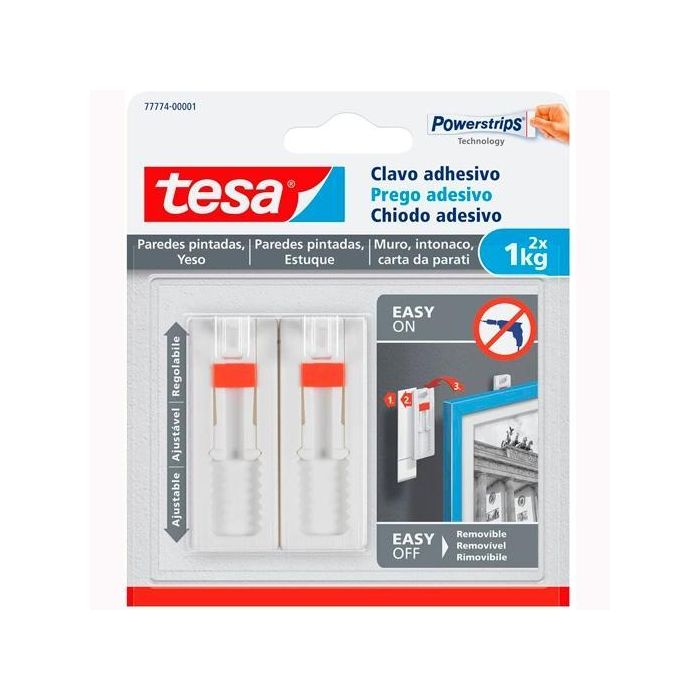 Tesa Clavo Adhesivo Ajustable Hasta 1kg para Pared Lisa