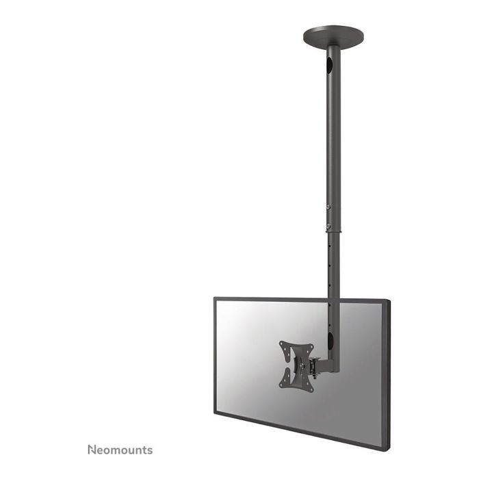 El FPMA-C050BLACK es un soporte de techo con 1 punto de giro para pantallas LCD/LED/TFT de hasta 30" (76 cm). Este Neomounts by Newstar LCD/LED montaje en techo TFT FPMA-C050BLACK, le permite montar una pantalla en el techo. Este modelo permite a los usuarios girar, levantar, inclinar y girar la pantalla LCD para una máxima eficiencia y confort. El montaje en el techo se puede conectar fácilmente a la parte trasera de la pantalla utilizando el patrón de agujeros VESA universal de 75/100. Si el patrón de agujeros es diferente, por favor, compre uno de nuestros platos de conversión VESA.