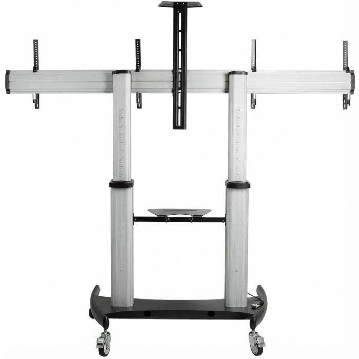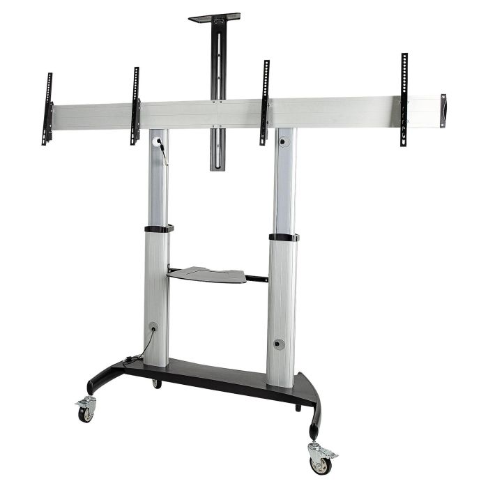 Este soporte de TV móvil doble le permite crear un centro multimedia AV rodante que es fácil de mover por las aulas, oficinas, salas de juntas, reuniones o entornos de aprendizaje. Para una mayor estabilidad y seguridad, el carro móvil ha sido diseñado con una gran base de 1,22 m x 0,71 m que le permitirá montar dos pantallas de 37" a 60" y hasta 110 lb/cada una de peso.