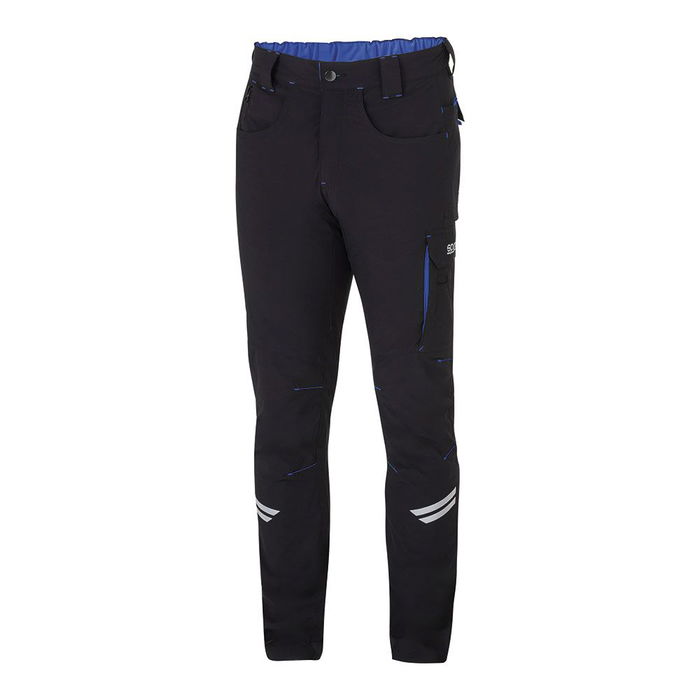 Pantalón ligero técnico negro/azul kansas t1 - s - pantalón elástico técnico con multibolsillos, bandas reflectantes y refuerzos antiabrasión en rodillas, 90% nylon-10% spandex