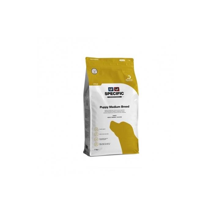 - SPECIFIC™ Puppy Medium Breed es un alimento completo y equilibrado para cachorros de razas medianas (10 – 25 kg de peso adulto), perras adultas gestantes y en período de lactancia.