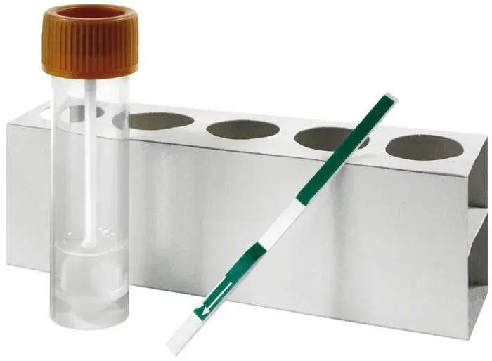 Prueba rápida de Virbac para la detección de antígenos solubles de Giardia duodenalis en perros y gatos. Utiliza un método inmunocromatográfico en tira para analizar muestras de heces. Ofrece una alta fiabilidad, con una sensibilidad del 95,6% y una especificidad del 100% en comparación con técnicas de referencia de laboratorio ELISA, y un umbral de detección de 80 quistes por gramo de heces. La presentación es una caja con 5 test.
