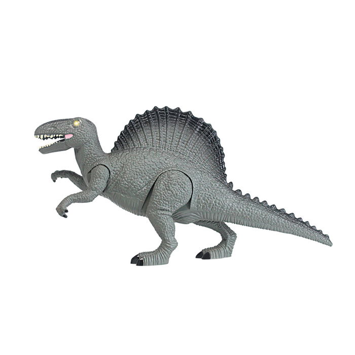 Dinosaurio con luces y sonido. Es de una tamaño pequeño y fácil de transportar a cualquier parte. Estética y color muy realista. Se iluminan los ojos a la vez que suena su gruñido. No recomendado para menores de 3 años.