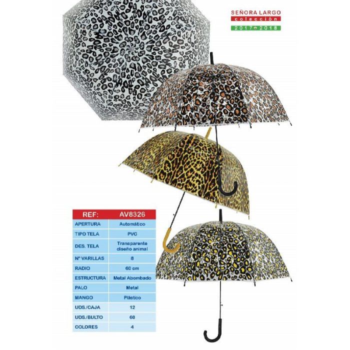 SPLASH BY AVANT Paraguas Largo Automatico de Transporte para Mujer con Diseno Animal - Modelo AVANT SRA