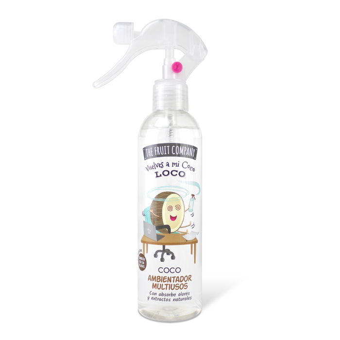 Sumérgete en una experiencia aromática inolvidable con el ambientador en spray coco the fruit company. este cautivador ambientador te hará enloquecer y desear pulverizarlo en cada rincón y superficie de tu hogar para crear una atmósfera de locura.con un generoso tamaño de 250 ml, este spray ambientador te transportará instantáneamente a un paraíso exótico con su irresistible aroma a coco. formulado con extractos naturales, su fragancia te envolverá con una sensación única y refrescante. además, su fórmula ha sido diseñada para ser apta para tejidos, absorbiendo los olores indeseados sin dejar manchas.el ambientador en spray coco de the fruit company cuenta con una pistola y una base hidroalcohólica, lo que permite una pulverización fina y delicada. esto asegura que el aroma del ambientador se mantenga suspendido en el aire durante más tiempo, permitiendo que disfrutes de su perfume por más tiempo.pero eso no es todo. nuestro producto es un auténtico absorbe olores, gracias a una molécula especial que elimina las partículas generadoras de mal olor de forma efectiva. desde el momento en que lo rocías, experimentarás una salida característica que estimulará tus papilas gustativas y despertará tus sentidos. su corazón desvela una exquisita combinación de notas de coco, vainilla exótica y cítricos caribeños, transportándote a un paraíso tropical. y como toque final, un fondo de dulces vainillas y tostados azúcares le dan un carácter único a esta fragancia irresistible.descubre la magia de un hogar perfumado con el ambientador en spray coco the fruit company. cada pulverización te sumergirá en un mundo de sensaciones deliciosas y te envolverá en un aroma que no podrás resistir. atrapa los olores indeseados, refresca tus espacios y crea una atmósfera de ensueño. ¡deja que el aroma del coco te transporte a un paraíso tropical en tu propio hogar!