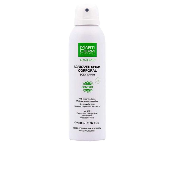 Optimiza tu cuidado de la piel con el MARTIDERM ACNIOVER spray corporal de 150 ml. Este producto, formulado sin alcohol, ha sido especialmente diseñado para combatir la aparición de imperfecciones y granitos en grandes áreas del cuerpo, como el pecho y la espalda.