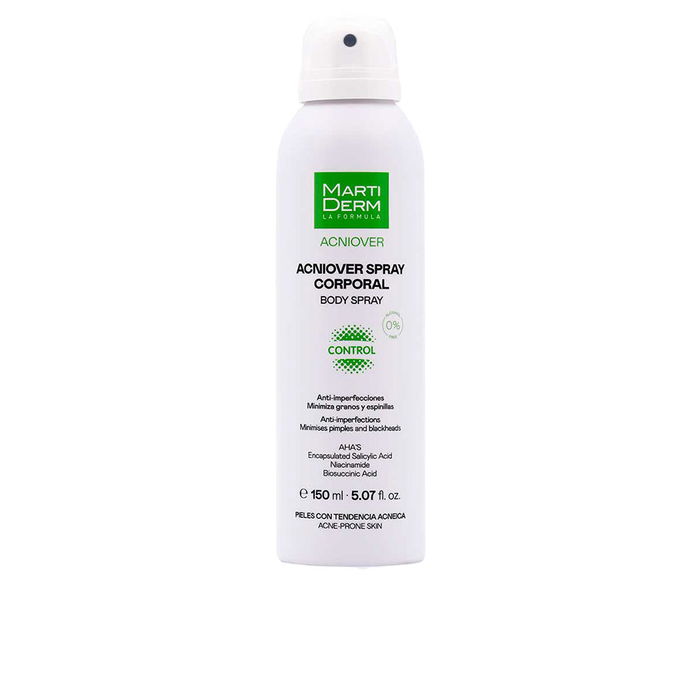 Optimiza tu cuidado de la piel con el MARTIDERM ACNIOVER spray corporal de 150 ml, un producto sin alcohol confeccionado especialmente para combatir la aparición de imperfecciones y granitos en grandes áreas del cuerpo, tales como el pecho y la espalda.