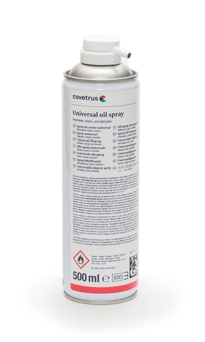 Spray de aceite universal de Covetrus para turbinas dentales rectas y contra-ángulos. Este producto desengrasa, limpia y lubrica de forma eficaz, manteniendo el buen funcionamiento de los equipos odontológicos.