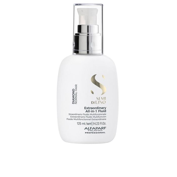 Descubre el poder del SEMI DI LINO DIAMOND extraordinary all-in-1 fluid de Alfaparf Milano, un tratamiento multifuncional diseñado para transformar tu cabello. Este innovador líquido sin enjuague aporta un brillo deslumbrante al instante, desenreda la melena con facilidad y protege el cabello de los dañinos rayos UVA y UVB.
