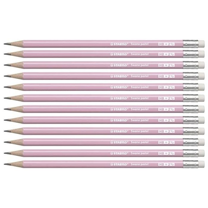 Stabilo Lápiz Grafito Con Goma Pastel Rosa -12 Unidades-