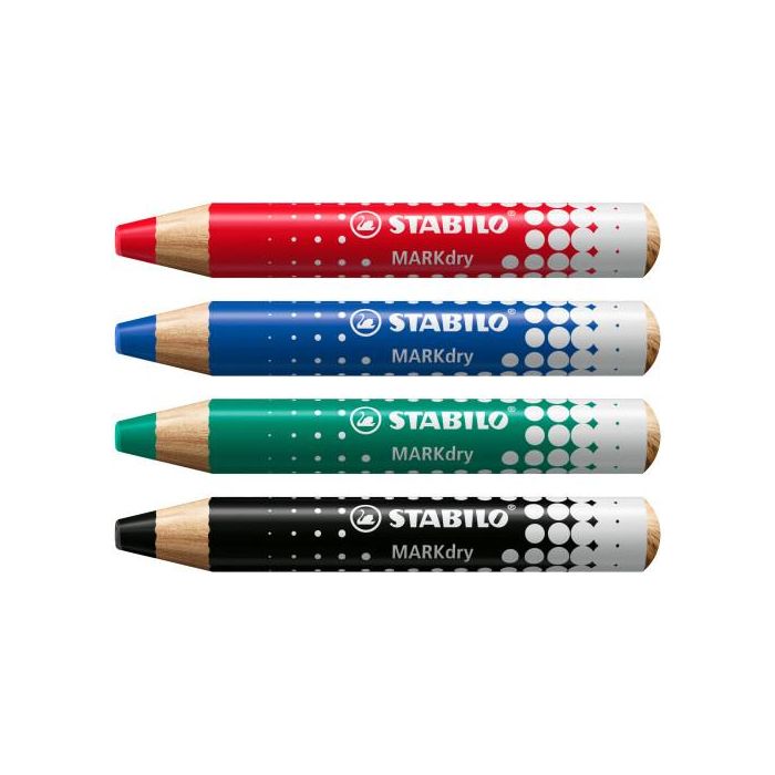 Stabilo Markdry Marcador en Seco para Pizarra Blanca y Papel - Estuche 4 Unidades Surtidos
