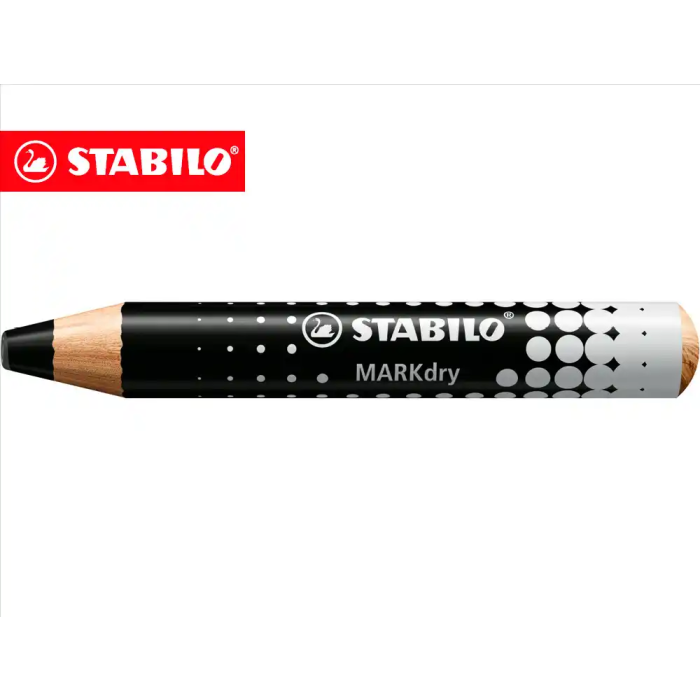 Stabilo Markdry Marcador en Seco para Pizarra Blanca y Papel, Negro, Caja 5 Ud
