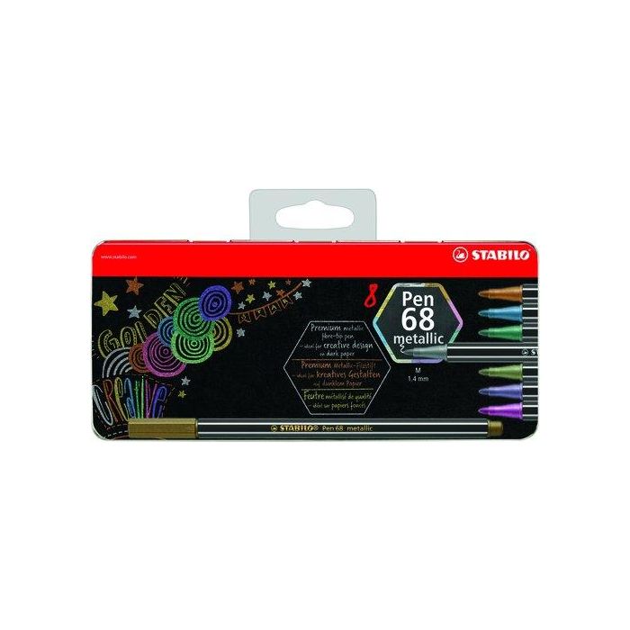 Stabilo Rotuladores Pen 68 Metallic C-Surtidos Metálicos Estuche De Metal 8 Ud