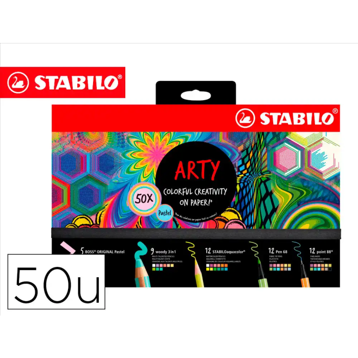 Stabilo Set Creativo Arty Pastel Estuche 50 Ud C-Surtidos, Marcadores, Lápices de Colores y Rotuladores en Tonos Pastel
