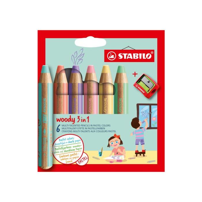 Stabilo 8806-3 STABILO woody 3 in 1 Lápices de Colores, Caja de 6 Piezas, Surtidos