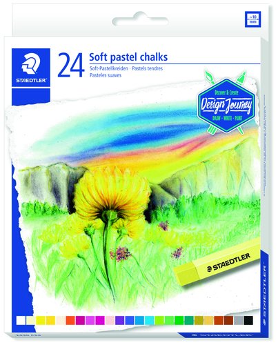 Tizas de pastel suaves con faja de papel para evitar ensuciar los dedos, de calidad profesional en colores intensos y brillantes. Resistentes a la luminosidad (se recomienda fijación) y con excelentes propiedades de mezcla entre colores.