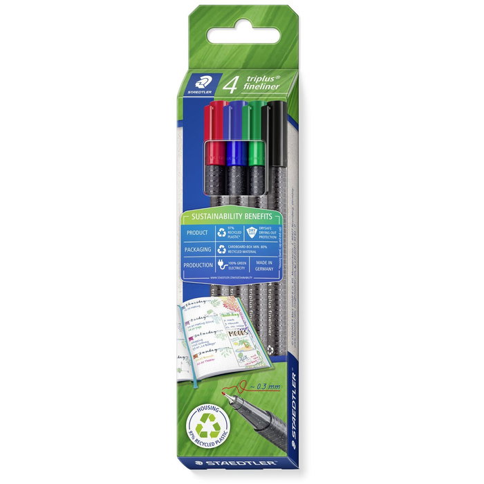 Staedtler 334 RC4. Negro. Azul. Verde. Rojo. Fino. Multicolor. Polipropileno (PP). Plástico reciclado. Triángulo. Tinta con base de agua