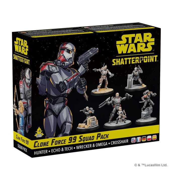 La Fuerza Clon 99, también conocida como la Remesa Mala, está formada por soldados clon con mutaciones genéticas que les otorgan capacidades especiales. Esta expansión incluye a los icónicos miembros del escuadrón: Hunter, experto rastreador, Tech, genio tecnológico, Crosshair, preciso francotirador, Wrecker, fuerza bruta en combate cuerpo a cuerpo, y Echo, cíborg estratégico con pasado como soldado CAR. A ellos se suma Omega, joven clon con un importante papel dentro del grupo.