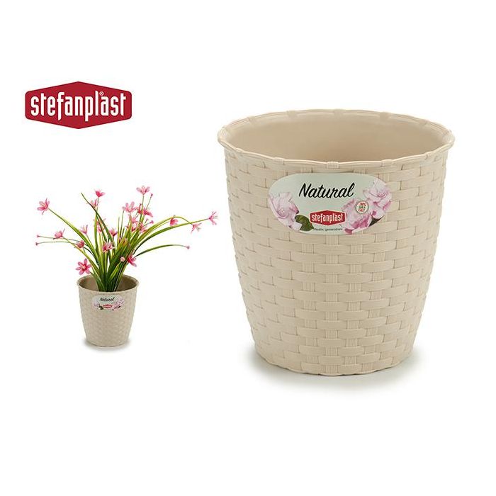 Stefanplast Maceta Natural Inter Exter 14 Diám. Beige, Plastico, 14 cm Diámetro x 12.5 cm Alto, para Interior y Exterior (Set de 12)