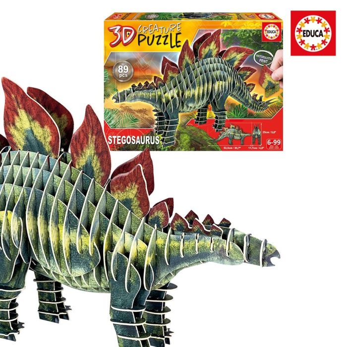 Educa Puzzle 3D Stegosaurus 19184 - Criatura Realista de Cartón de 52,5 cm, 89 Piezas para +6 Años