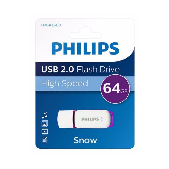 Philips FM64FD70B, 64 GB, USB tipo A, 2.0, Tapa, 8 g, Púrpura, Blanco