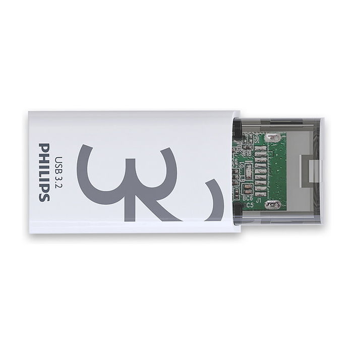 Philips Click, 32 GB, USB Tipo C, 3.2 Gen 1 (3.1 Gen 1), 120 MB/s, Tapa, Transparente, Blanco