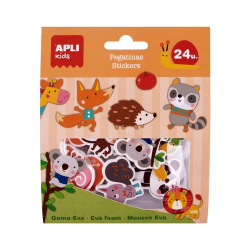 24 pegatinas con adhesivo permanente fabricadas en goma EVA. Un blíster con bonitos diseños de animales salvajes para que los más pequeños puedan: decorar invitaciones o tarjetas, aprendan vocabulario o a formar frases mediante la narrativa visual, desarrollen la psicomotricidad fina y agudicen el ingenio jugando.