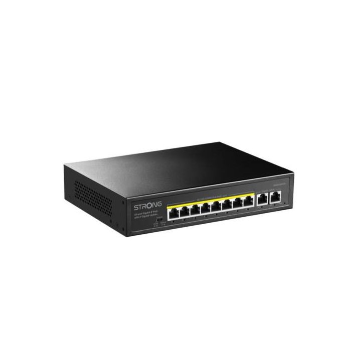 Strong SW8010POE+ Switch Gigabit PoE+ de 10 puertos con 8 puertos PoE y 2 enlaces ascendentes