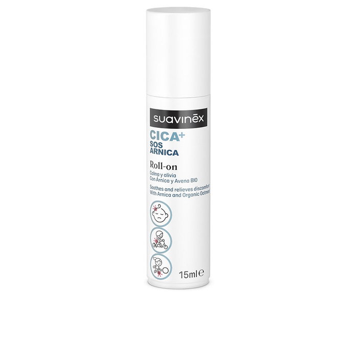 Suavinex CICA+ SOS Roll-On Árnica 15 ml con Bola de Acero, 94% Ingredientes Naturales, Alivio Rápido para Golpes, Apto para Bebés y Piel Sensible, Más de 300 Aplicaciones