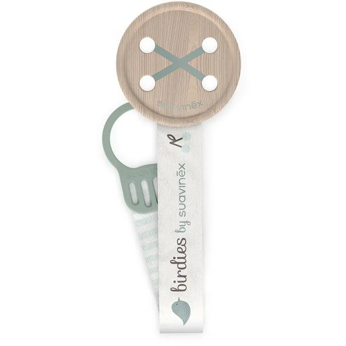 Suavinex Clip para chupete con cinta Birdies, Verde, AACOF17381, desde el nacimiento
