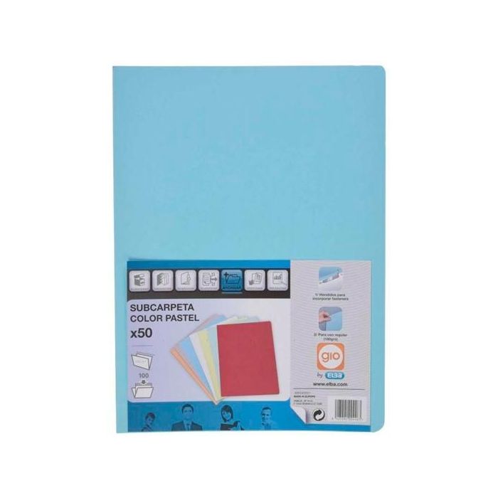 Gio Subcarpeta Simple Cartulina Folio 180 gr Azul Pastel (50 Unidades)