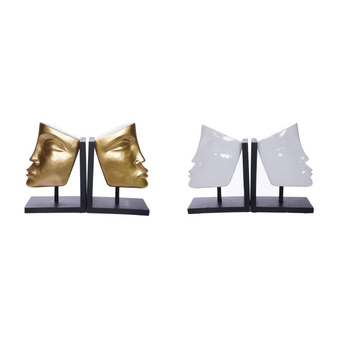 DKD Home Decor Sujetalibros Moderno Dorado Blanco Resina Cara Set 2 Piezas 10 x 22 x 30.5 cm