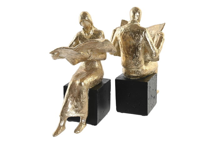 Sujetalibros Moderno DKD Home Decor Dorado Negro 11 x 20.5 x 28 cm Set de 2