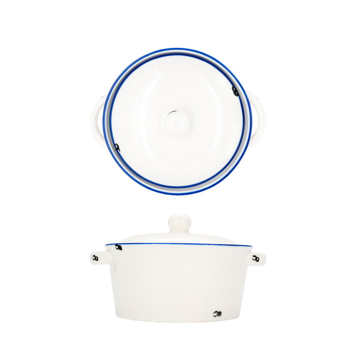 Summa Cazuelita con Tapa de Porcelana 13 cm, 42 cl, Color Marfil y Azul (Set de 2)