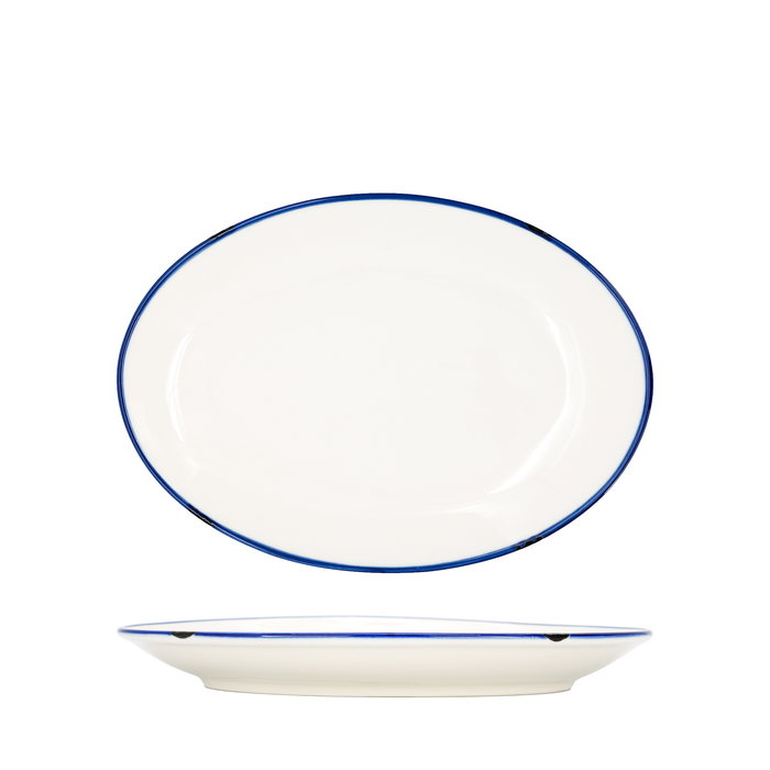 SUMMA Fuente Oval Alacena Azul para Vajilla, Decorada, 22x16 cm - Porcelana Blanco Marfil con Detalles Azul (Set de 6)
