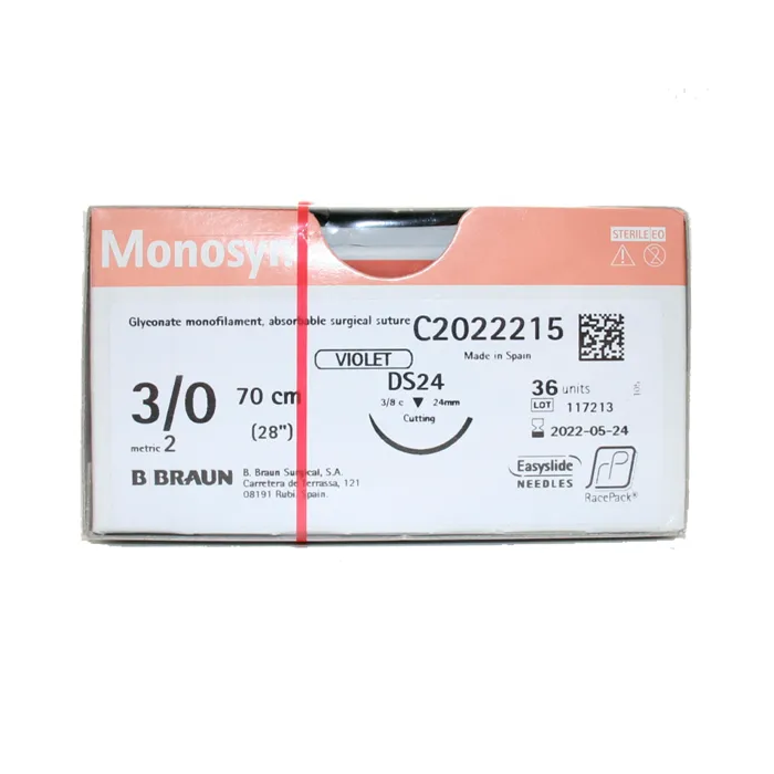 Elaborada con un material de alta resistencia, la sutura Monosyn Violet es absorbible, lo que significa que el cuerpo la metaboliza gradualmente, eliminando la necesidad de retirada. Su color violeta facilita una excelente visibilidad en el campo quirúrgico, permitiendo al cirujano trabajar con precisión.
