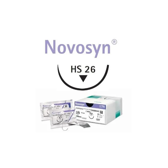 Novosyn® es una sutura sintética absorbible a medio plazo, multifilar trenzada e impregnada, fabricada a base de poliglactin 910 (90/10 Poli (glicolido-co-L-lactido)). Disponible en color violeta e incoloro.
