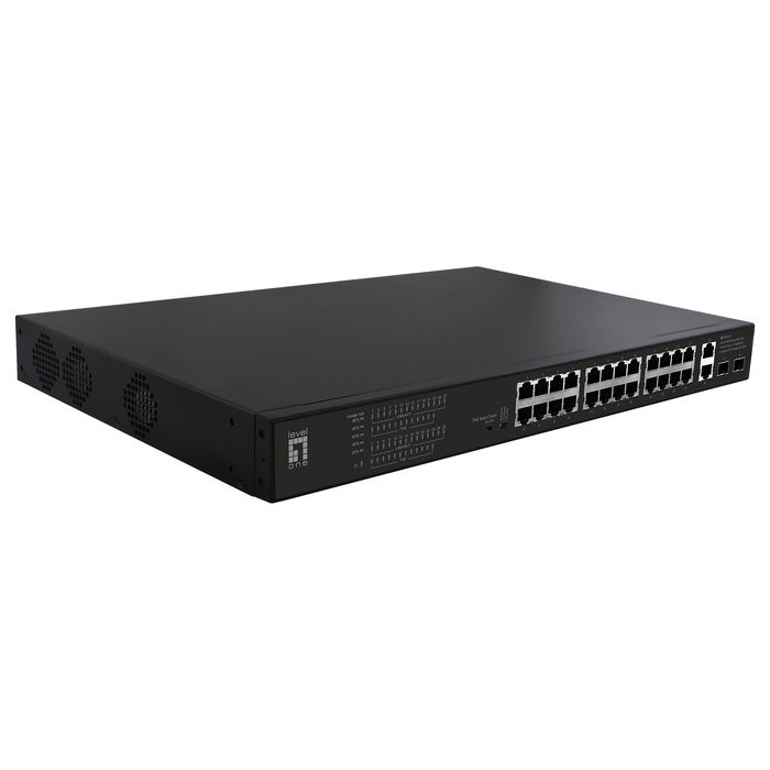 LevelOne FGP-2831 Switch No Administrado 24 Puertos PoE+ 10/100 Ethernet, 2 Gigabit Ethernet, 2 SFP, Montaje en Rack 390W