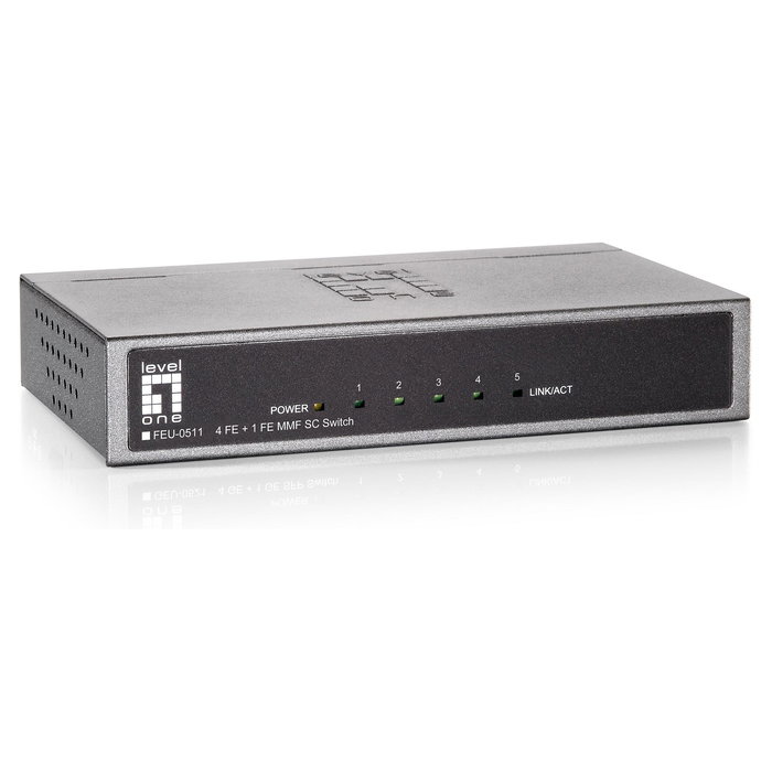 LevelOne Switch Fast Ethernet de 5 puertos, 1 Port SC Multi-Mode Fiber, 2km, Fast Ethernet (10/100), Bidireccional completo (Full duplex)