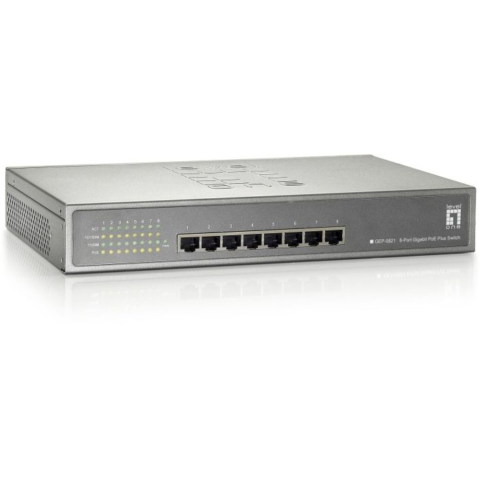 Level One GEP-0821 Switch 8 Puertos PoE+ 123.2W Gigabit Ethernet Montaje en Rack