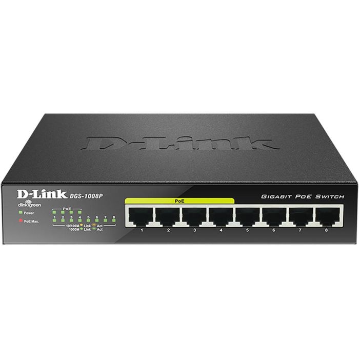 D-LINK Switch DGS-1008P 8 Puertos Gigabit Ethernet No Administrado PoE hasta 68W