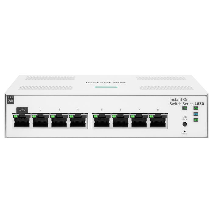 HPE Aruba Networking Networking Instant On Switch 8p Gigabit 1830, Gestionado, L2, Gigabit Ethernet (10/100/1000), Bidireccional completo (Full duplex), Montaje en rack