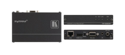 Kramer Electronics TP-580R. Tipo: Receptor AV, Máxima resolución: 3840 x 2160 Pixeles, Tipos de cable soportados: Cat6. Tipo de serie de interfaz: RS-232. Voltaje de entrada AC: 12 V. Dimensiones (Ancho x Profundidad x Altura): 188 x 114 x 24 mm, Peso: 600 g