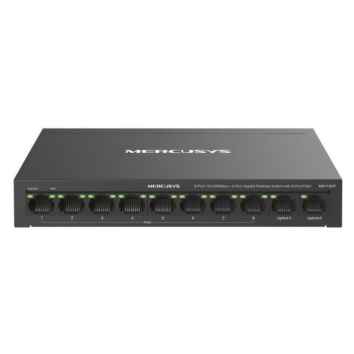 Mercusys MS110CP Switch PoE+ de 10 Puertos Fast Ethernet (10/100) con Montaje en Pared, Negro