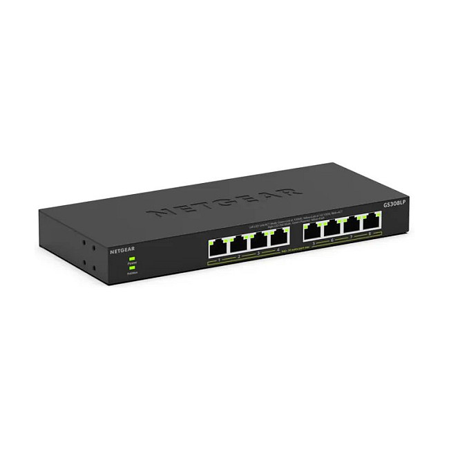 NETGEAR GS308LP, No administrado, Gigabit Ethernet (10/100/1000), Energía sobre Ethernet (PoE), Montaje en rack, Escritorio, Montaje de pared