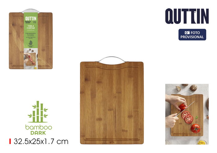 Tabla Cortar Bambu Dark C/Asa 32.5C Quttin