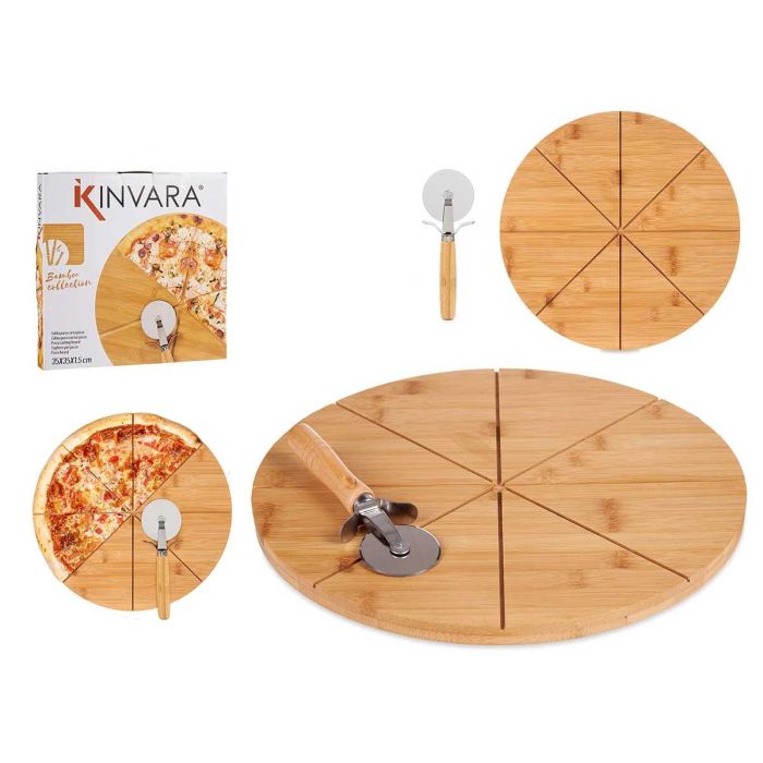 Kinvara Plato para Pizza de Bambú de 35 cm con Cortador de Pizza (Set de 6)