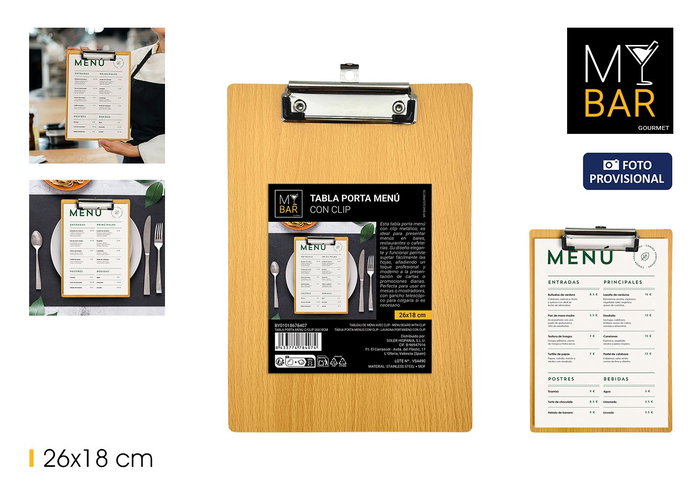 Tabla Porta Menu C/Clip 26X18Cm My Bar