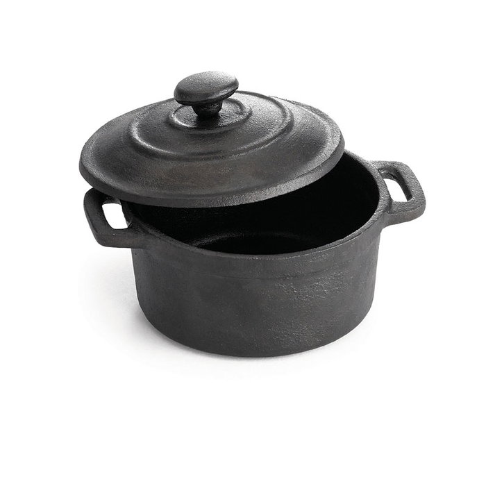 TABLECRAFT - CW30110/6 - Pack de 6 unidades - Cazuelita miniatura redonda con tapa 235 ml - 10 x 10 x 8,5 cm - 13 cm Ø con asa - Negro